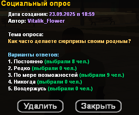 Эти данные показывают, что жители San Andreas ценят внимание, заботу и умеют делиться радостью с окружающими.